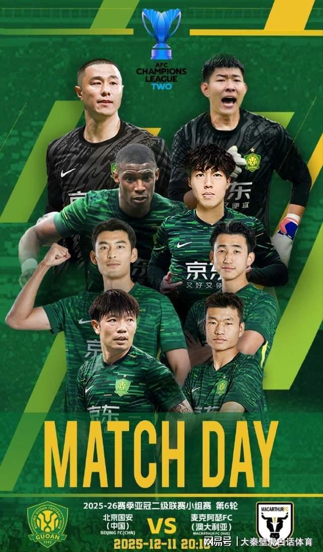 亚冠二级赛场第6轮结束多场比赛,其中一场焦点之战,由“御林军”、北京国安队坐镇主场迎战小组头名麦克阿瑟FC队。